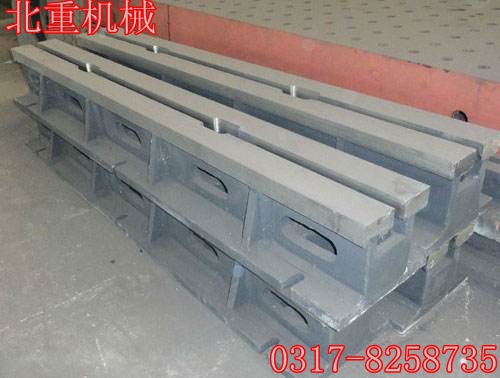 鑄鐵T型槽鐵工作面硬度為HB170-240,經(jīng)過兩次人工處理(人工退火600度-700度和自然時效)使該產(chǎn)品的精度穩(wěn)定,耐磨性能好。鑄鐵地軌、鑄鋼地軌長度規(guī)格可以做成500mm到4000mm以內(nèi)的各種規(guī)格。外形尺寸、每米長度重量要根據(jù)客戶要求承重來確定,北重機(jī)械制造免費(fèi)為客戶設(shè)計圖紙、提供前期服務(wù)!